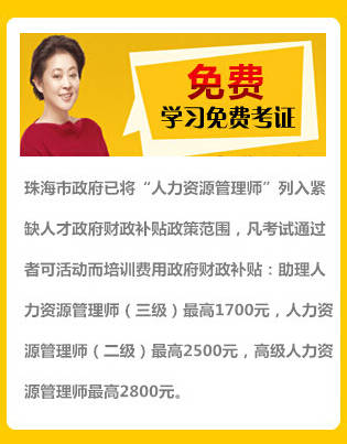 珠海市政府对珠海的紧缺工种之一“人力资源管理师”给予大力的政策支持!参加培训并通过考试的学员可以申请政府补贴